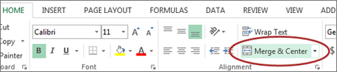 - Spanned cells will be identified by a screen reader (e.g., “Budget A1 through G1”). If content spans multiple cells visually, these cells should be merged. To merge cells, select Home and the Merge menu.